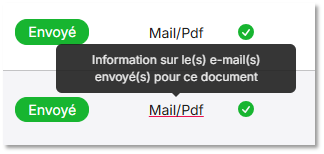 Pour chaque document repris dans la liste des documents, vous pouvez vérifier si le document PDF que vous avez envoyé par e-mail à un ou plusieurs destinataires a bien été livré.