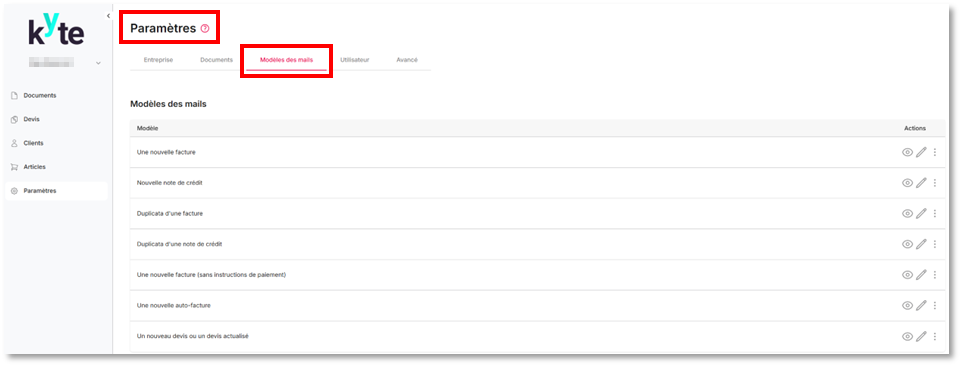 Les modèles d'e-mails permettent d'envoyer facilement et rapidement des documents à vos clients. Vous pouvez réutiliser un modèle d'e-mail à chaque fois pour effectuer certaines tâches courantes, comme l'envoi d'une facture.