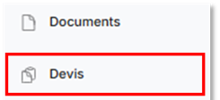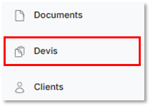 Une fois la fonctionnalité Devis activée, un nouvel élément "Devis" apparaît dans le menu de gauche.
