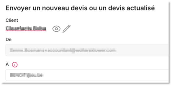 - Sauvegarder et envoyer : votre devis est final et vous souhaitez l’envoyer à votre client par e‑mail.