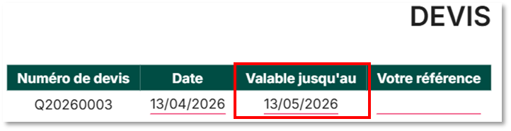Cette date apparaît sur le devis sous l’intitulé "Valable jusqu’au".
