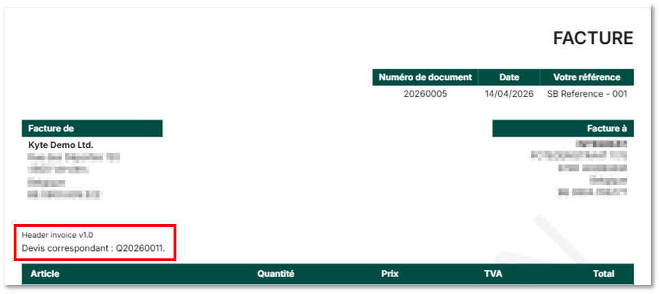 La facture mentionne également, en haut du document, une référence au devis d’origine.