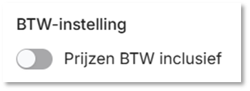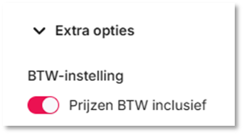 Als je voor één bepaalde factuur wil afwijken van deze standaardinstelling, kan je onder de “Extra opties” van deze factuur de schuifschakelaar “BTW-instelling” naar rechts zetten op “Prijzen BTW inclusief”.