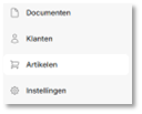 In de linkerbalk leidt het menu-item “Artikelen” je naar de catalogus waar je artikelen kan aanmaken of wijzigen.