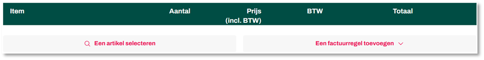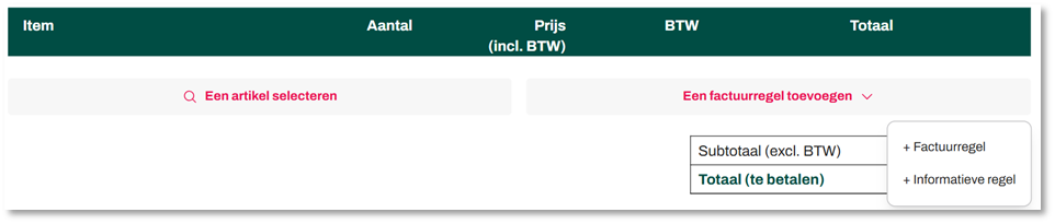Als je een artikel of info-item wil toevoegen dat (nog) niet in de artikelcatalogus staat, klik op “Een factuurregel toevoegen”: