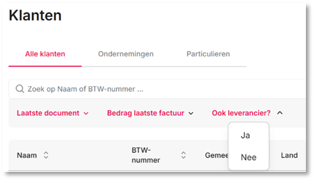 a) In de klantenlijst vind je ook een extra filter "Ook leverancier?"