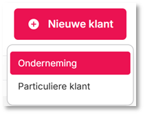 Voor nieuwe klant, klik hier je op de knop “Nieuwe klant” en vervolgens “Onderneming”: