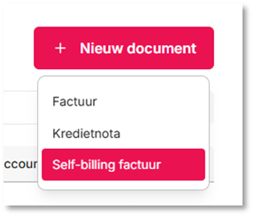 b) Vanuit de documentenlijst: klik bovenaan op de rode knop "+Nieuw document" en selecteer Self-billing factuur.