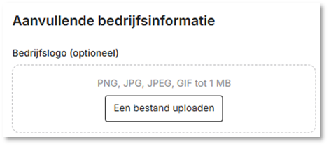 - Bij “Aanvullende bedrijfsinformatie” /Bedrijfslogo, klik op “Een bestand uploaden”